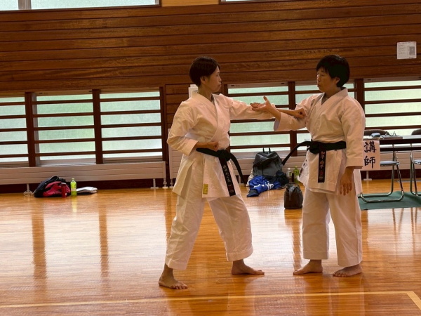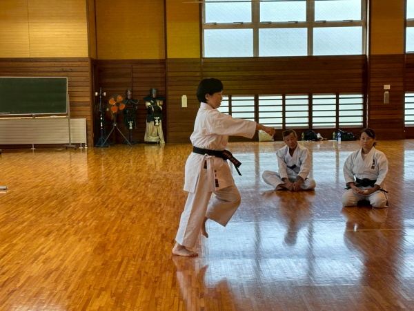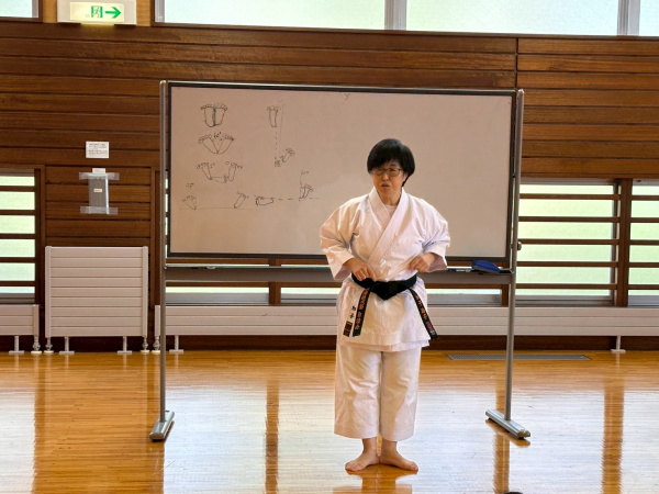 10月25日酒田市武道館において加子倫子先生による形セミナーが行われました。動きを良くするためのトレーニングの紹介から始まり、午前は「クーシャンクー」午後は「ニーセーシー」をご指導いただきました。 基本の立ち、形の動きの意味、分解の動きを事細かに熱心にご説明頂き、受講者も疑問点を活発に質問し有意義なセミナーでした。このセミナーを通じて頂いた種を、それぞれが花開くまで育てて行けるように立志を抱ける機会になりました。