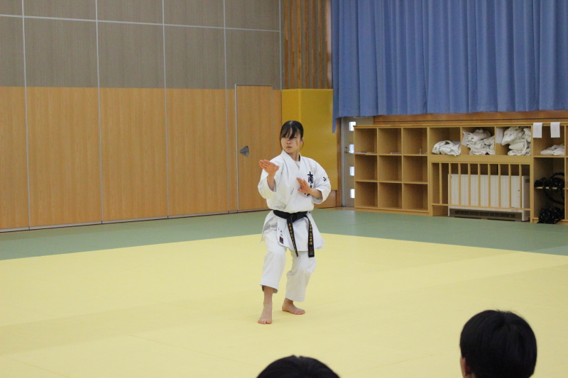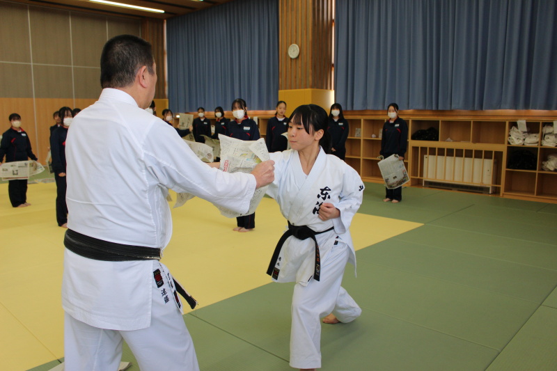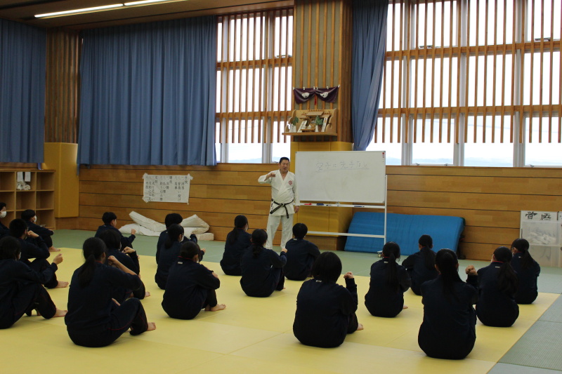 12月8日(月)~11日(木)の4日間、高畠町立高畠中学校において空手道授業が行われました。指導は遠藤隆夫副会長、飯野美智子理事、演武は大山花凜氏、青木朱莉氏が担当しました。2学年7クラスに、突き、受け、演武、新聞紙割、エア組手を2時間ずつ行いました。 報告書 アンケート結果